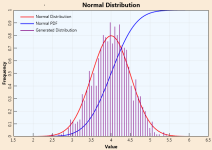 Statistics on a 1D array of numbers and random sample generation with normal, binomial, uniform and triangular distributions.