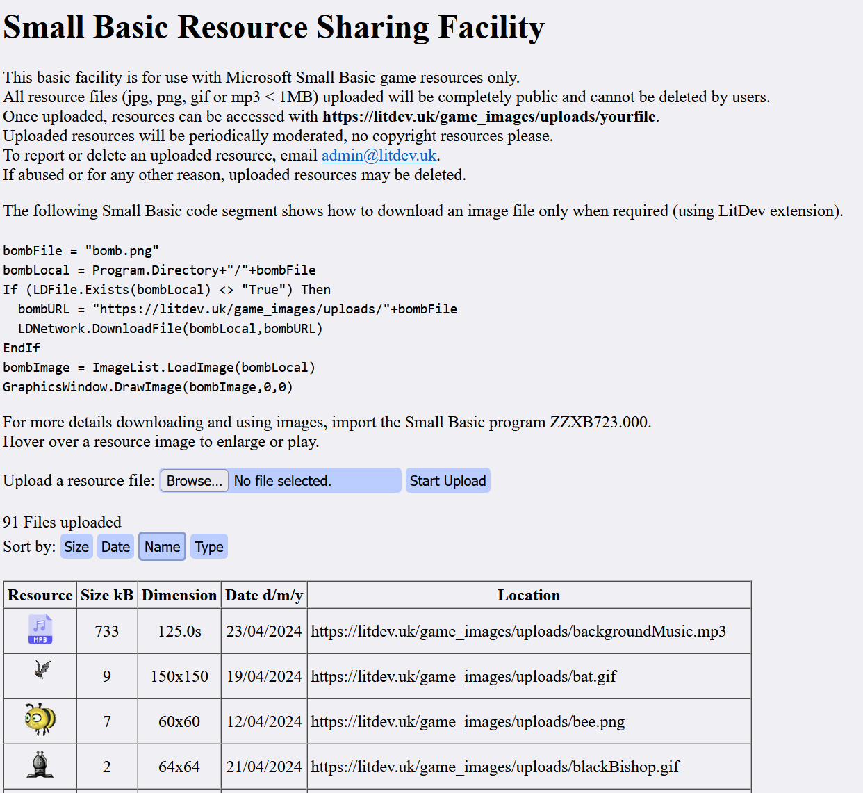 † The php files in the folders gamedata and highscore on this website are those used by the LDNetwork extension methods. You may use these with your own web site. Since the php files are both called server.php you should keep the gamedata and highscore file structure. To use the LitDev extension commands in LDNetwork with these php files (see download below) on your web site, you must first set the network location using the property LDUtilities.NetworkURL in your Small Basic code. The default value is